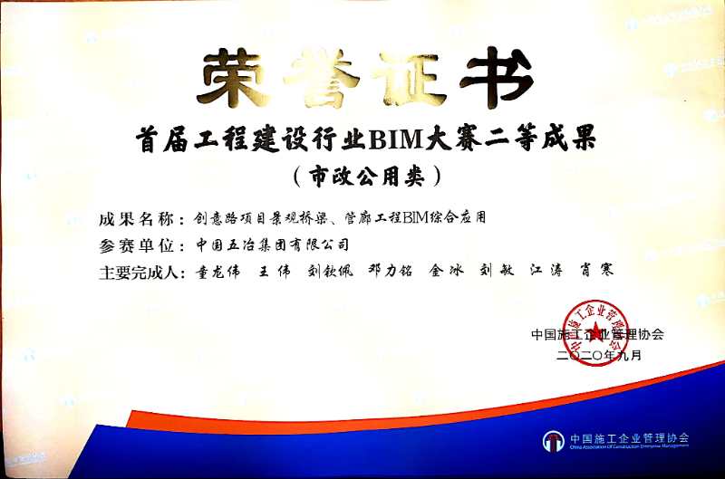 創(chuàng)意路項目景觀橋梁、管廊工程BIM綜合應用——第十一屆創(chuàng)新杯三等獎(工程建設專項)