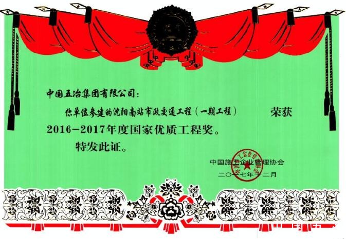 沈陽南站市政交通工程(一期工程)-2016-2017年度國家優(yōu)質(zhì)工程獎