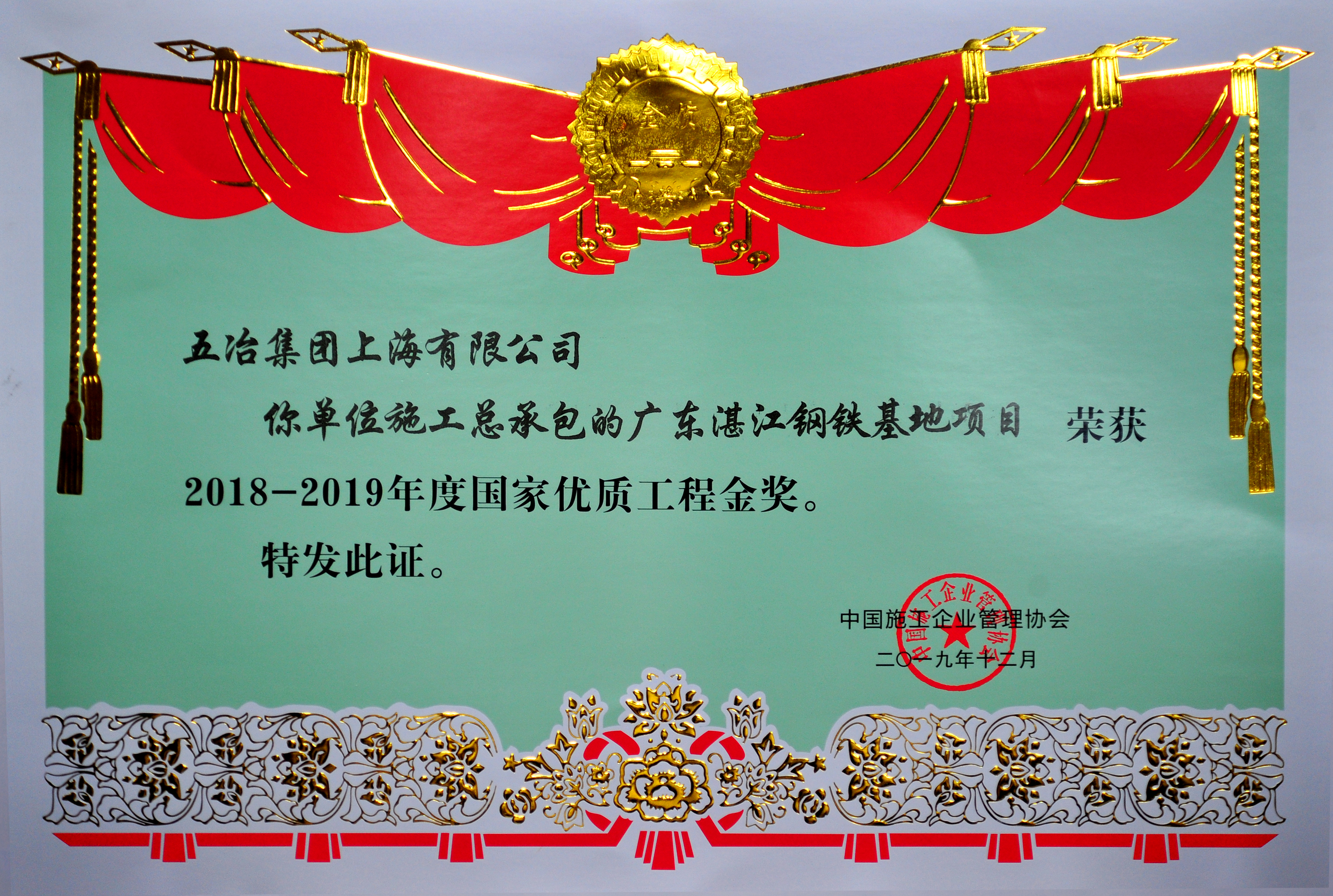 廣東湛江鋼鐵基地項目——2019年度國家優(yōu)質(zhì)工程獎金獎