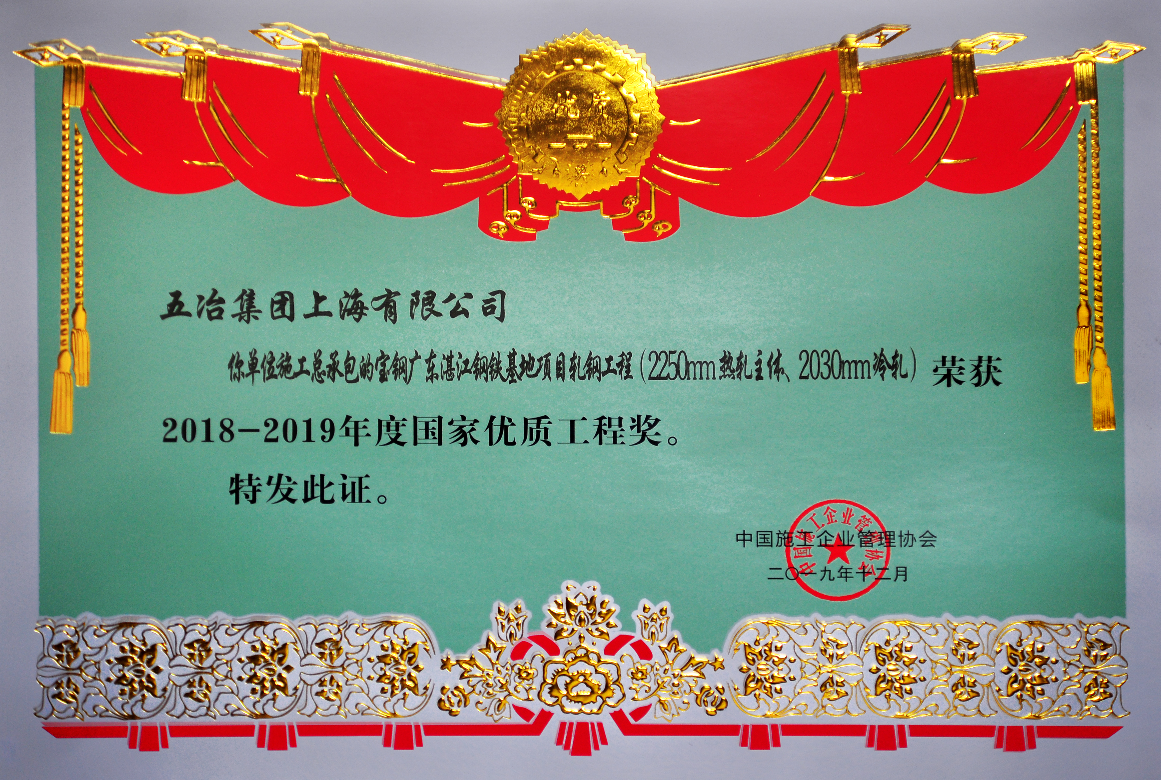 廣東湛江鋼鐵基地項目軋鋼工程(2250mm熱軋主體、2030mm冷軋)——2018年度國家優(yōu)質(zhì)工程