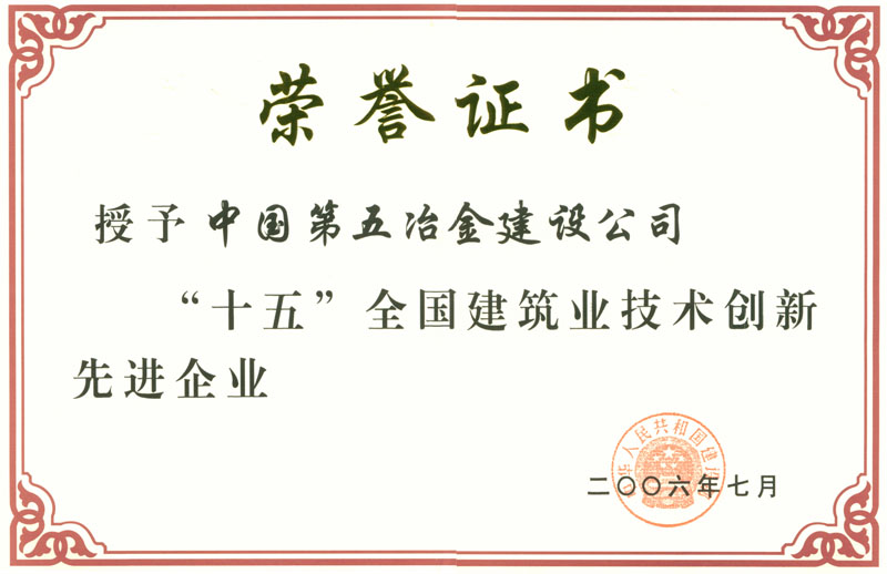 “十五”全國建筑業(yè)技術(shù)創(chuàng)新先進企業(yè)