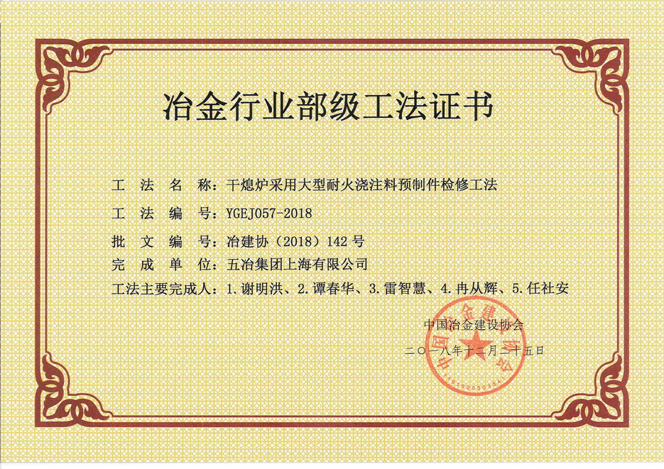 干熄爐采用大型耐火澆注料預(yù)制件檢修工法