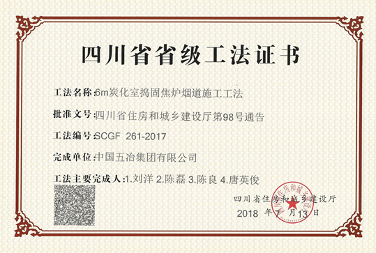 6M炭化室搗固焦爐煙道施工工法 SCGF 261-2017