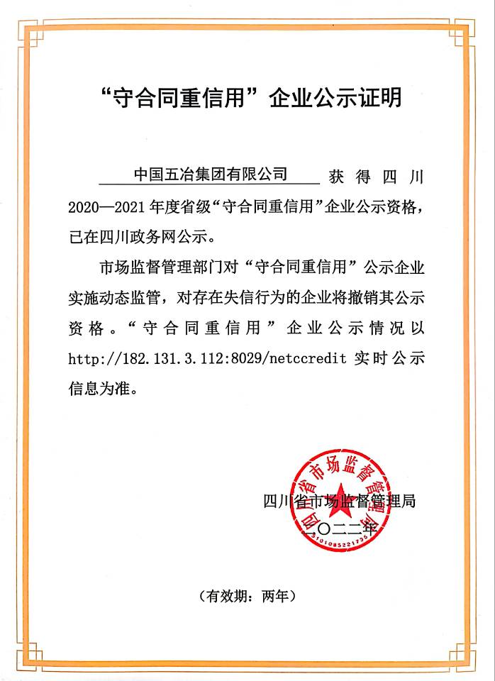 四川省守合同重信用企業(yè)