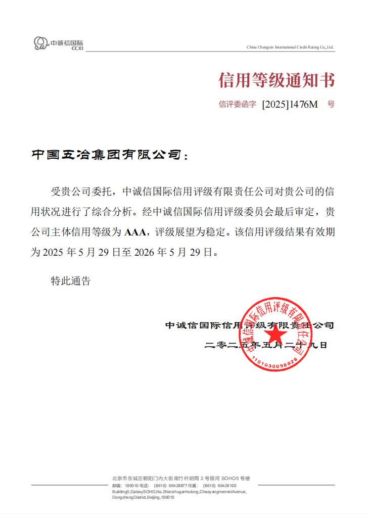 中誠信AAA級信用等級