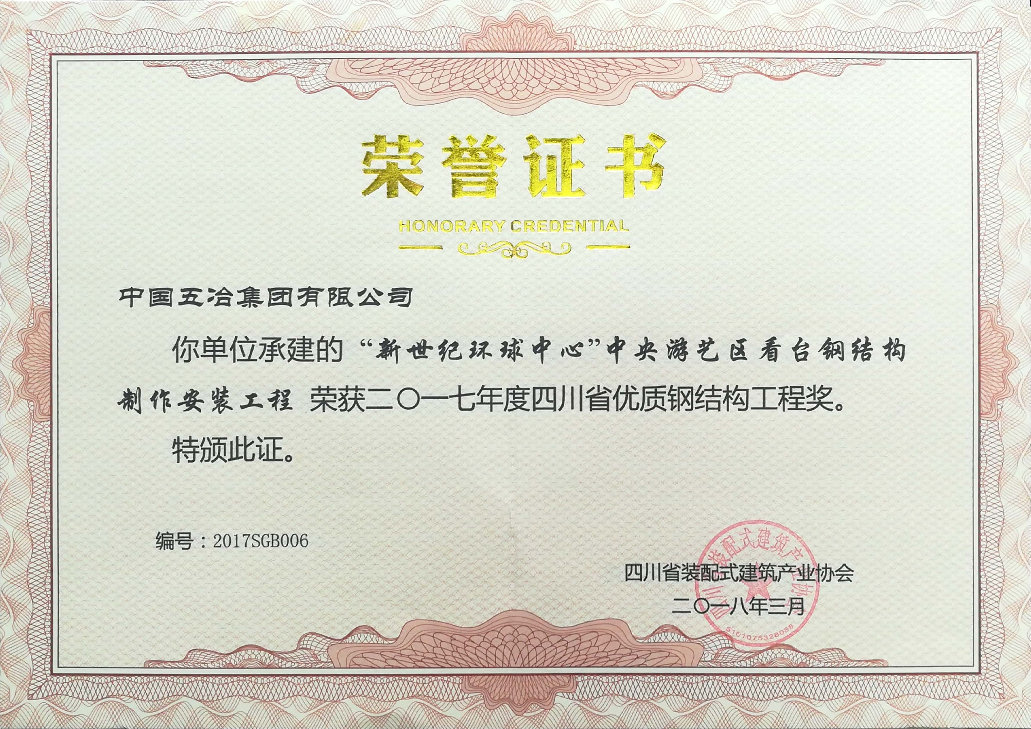 “新世紀(jì)環(huán)球中心”中央游藝區(qū)看臺(tái)鋼結(jié)構(gòu)制作安裝工程-2017年度四川省優(yōu)質(zhì)鋼結(jié)構(gòu)工程獎(jiǎng)