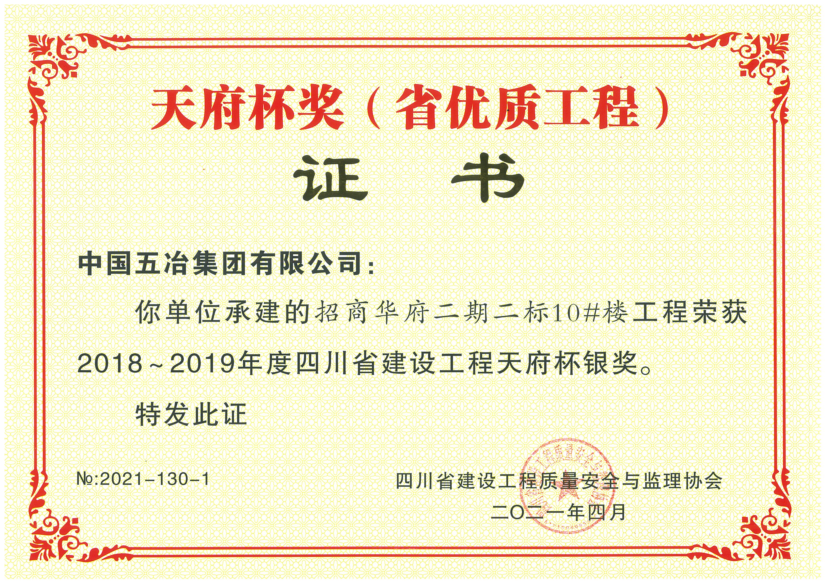 招商華府二期二標(biāo)10#樓工程-2018-2019年度天府杯銀獎(jiǎng)