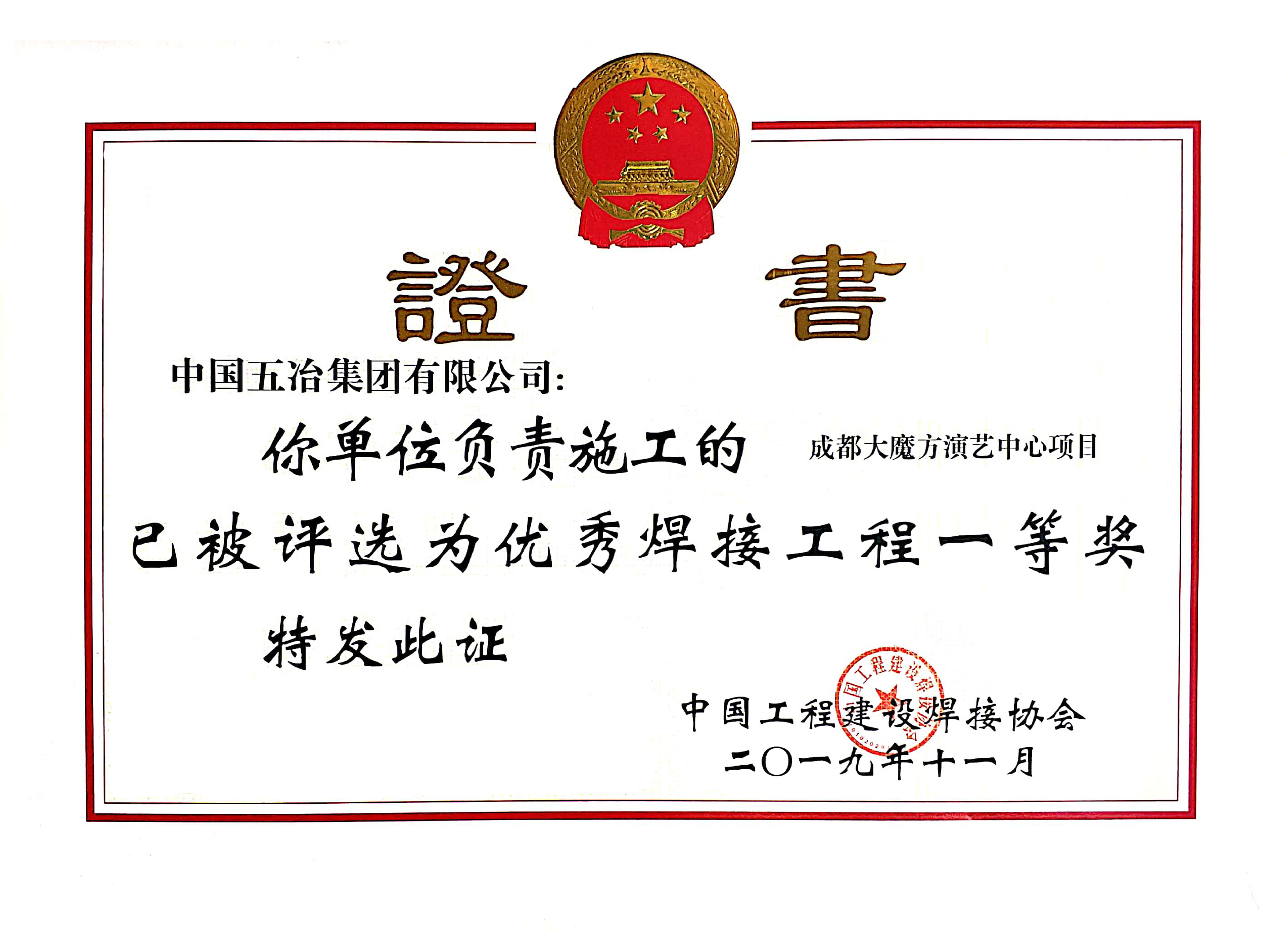 成都大魔方演藝中心項(xiàng)目-2019年度全國(guó)優(yōu)秀焊接工程一等獎(jiǎng)