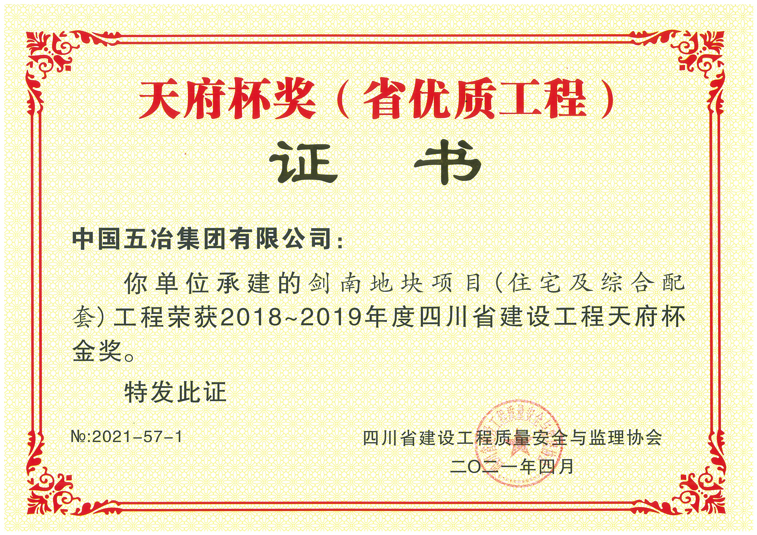 劍南地塊項(xiàng)目(住宅及綜合配套)工程-2018-2019年度四川省天府杯金獎(jiǎng)