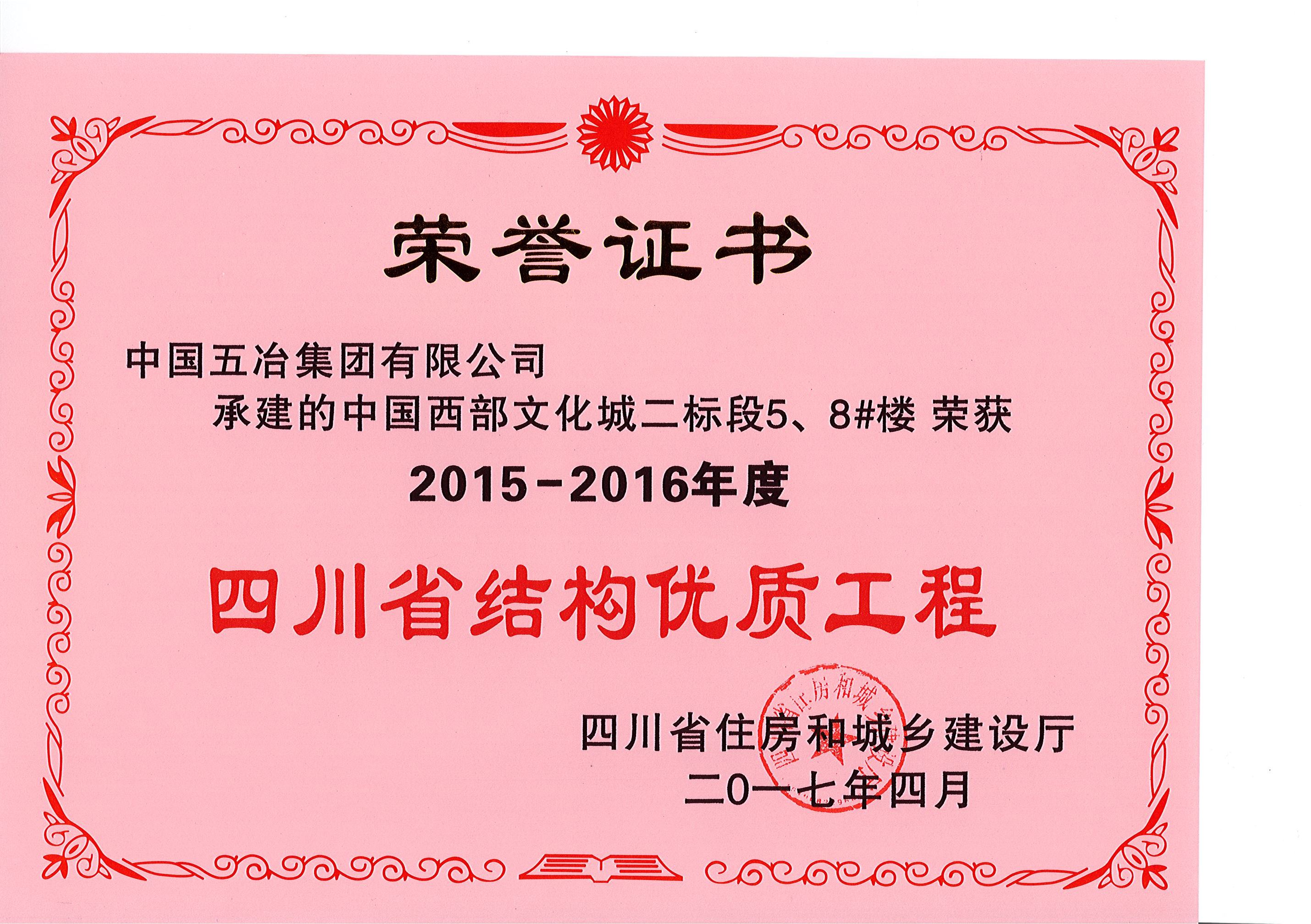 中國(guó)西部文化城二標(biāo)段5、8#樓—2015-2016年度四川省結(jié)構(gòu)優(yōu)質(zhì)工程