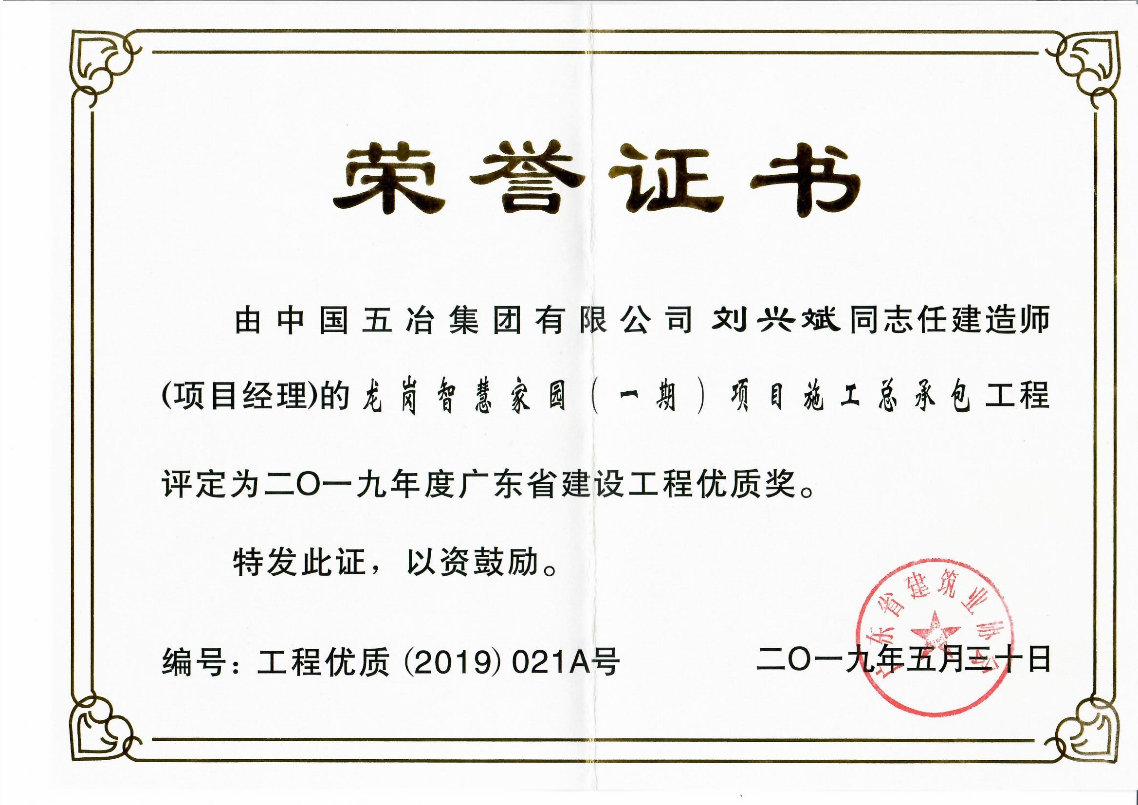 龍崗智慧家園(一期)項(xiàng)目施工總承包榮獲2019年度廣東省建設(shè)工程優(yōu)質(zhì)獎(jiǎng)(房屋建筑及專業(yè)工程)