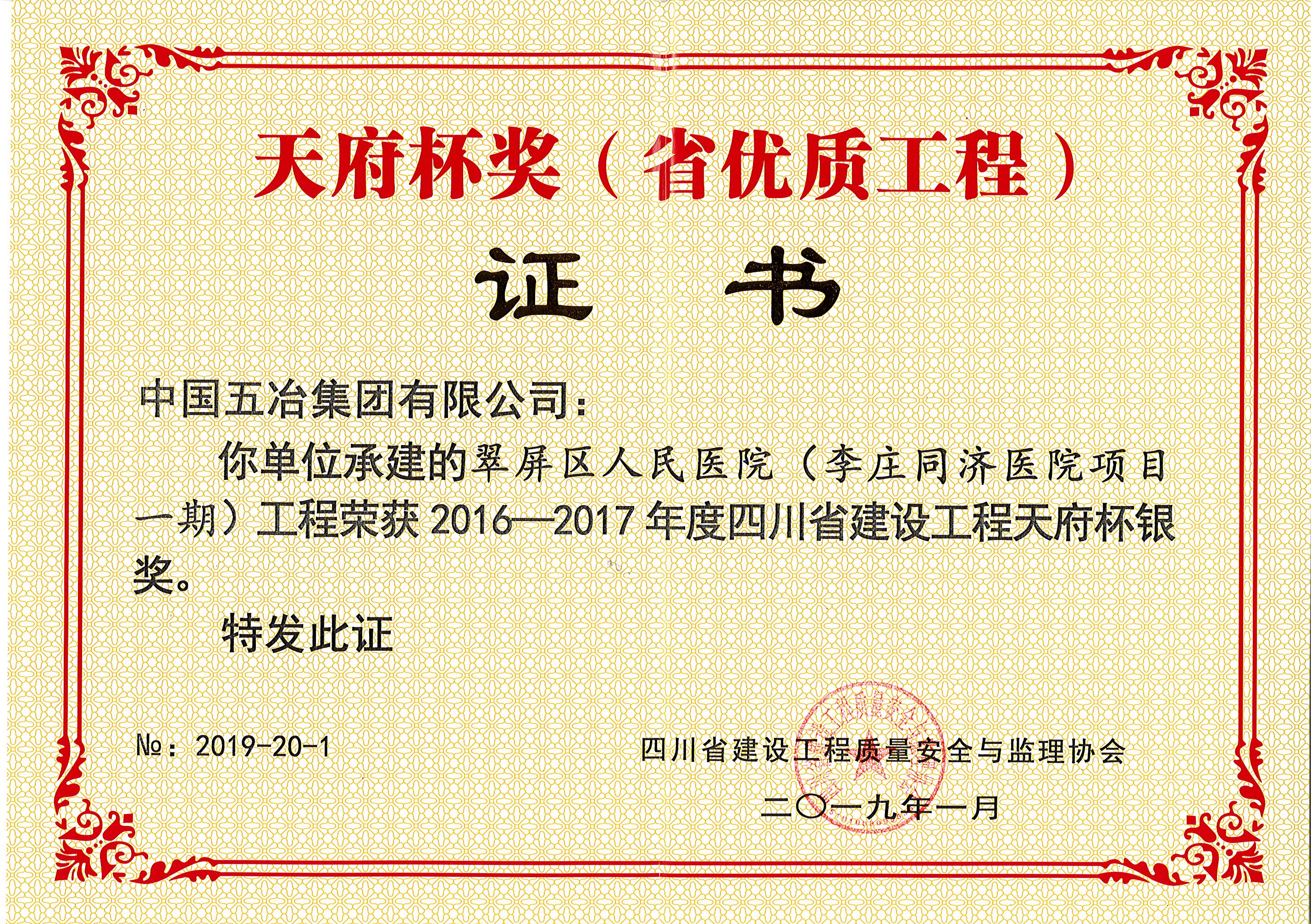 翠屏區(qū)人民醫(yī)院(李莊同濟(jì)醫(yī)院項(xiàng)目一期)—2016年-2017年度四川省建設(shè)工程天府杯銀獎(jiǎng)