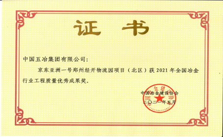 京東亞洲一號(hào)鄭州經(jīng)開物流園項(xiàng)目(北區(qū))——2021年全國(guó)冶金行業(yè)工程質(zhì)量?jī)?yōu)秀成果獎(jiǎng)