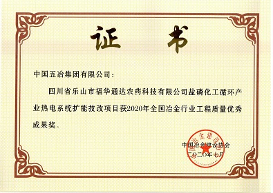 四川省樂(lè)山市福華通達(dá)農(nóng)藥科技有限公司鹽磷化工循環(huán)產(chǎn)業(yè)熱電系統(tǒng)擴(kuò)能技改項(xiàng)目-2020冶金行業(yè)工程質(zhì)量成果