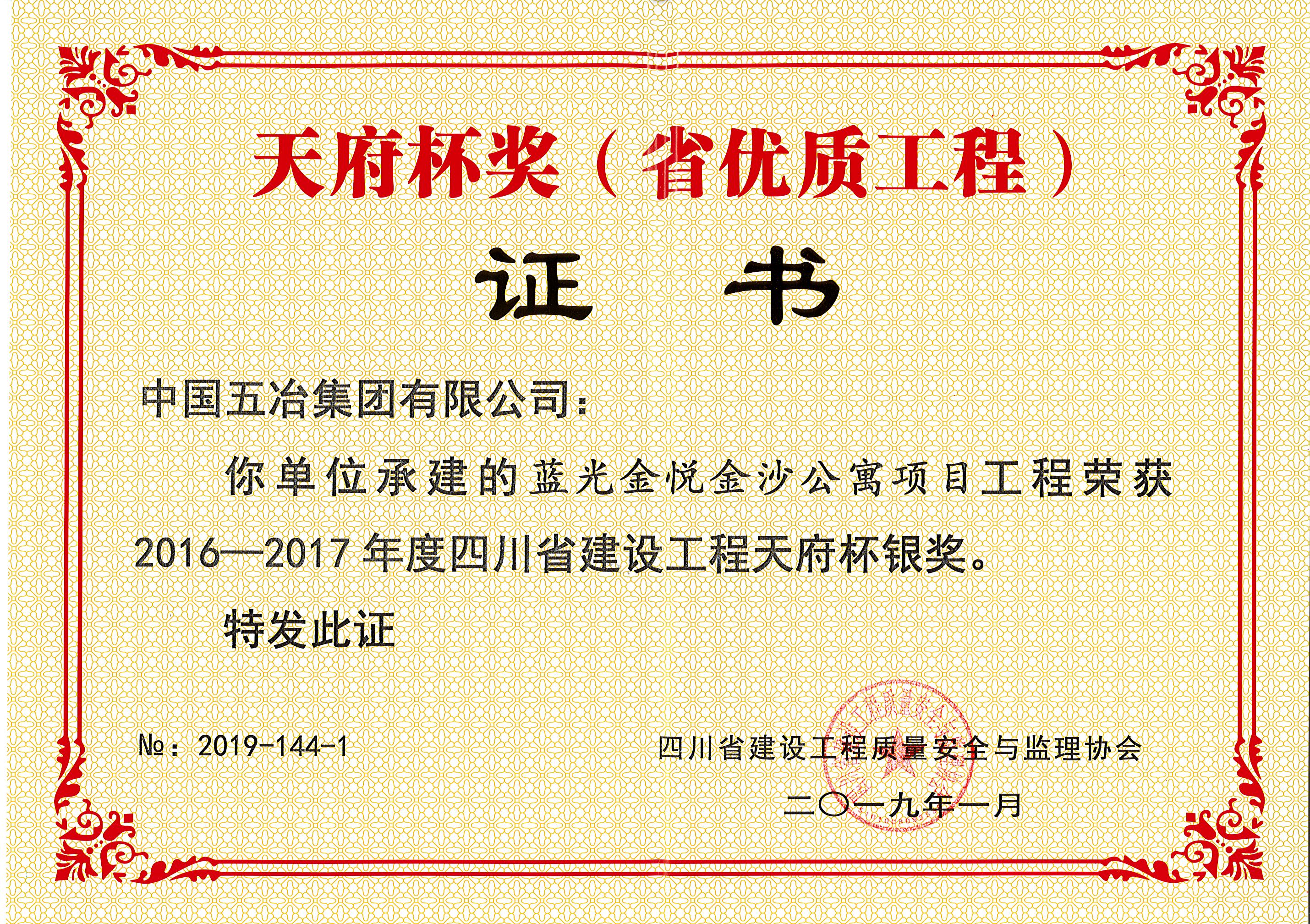 藍(lán)光金悅金沙公寓項(xiàng)目—2016-2017年度四川省建設(shè)工程天府杯銀獎(jiǎng)