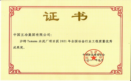 沙特Yamama水泥廠項目——2021年冶金優(yōu)質(zhì)工程
