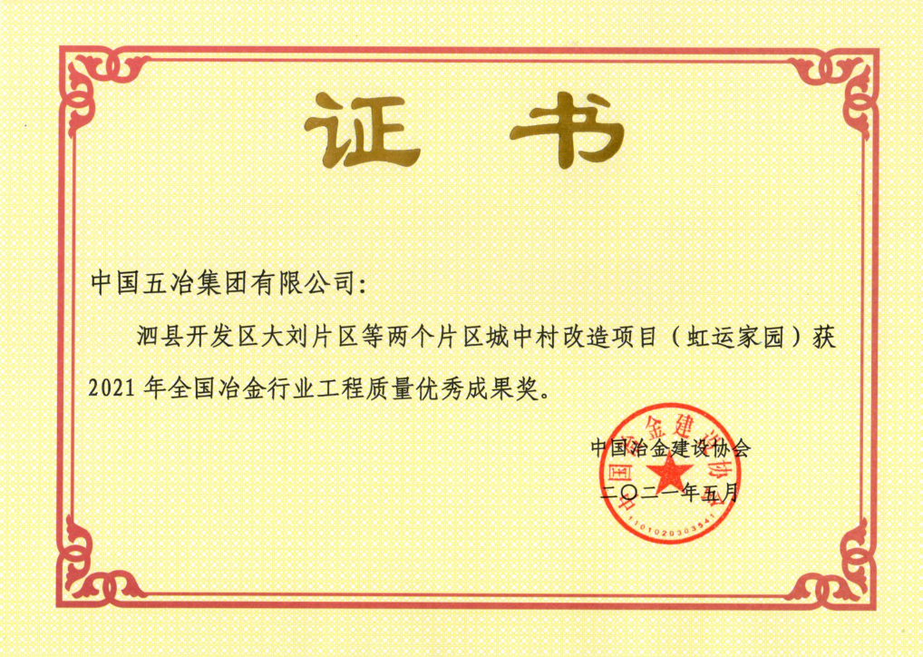 泗縣開發(fā)區(qū)大劉片區(qū)等兩個片區(qū)城中村改造項目(虹運家園)--2021年全國冶金行業(yè)工程質(zhì)量優(yōu)秀成果獎