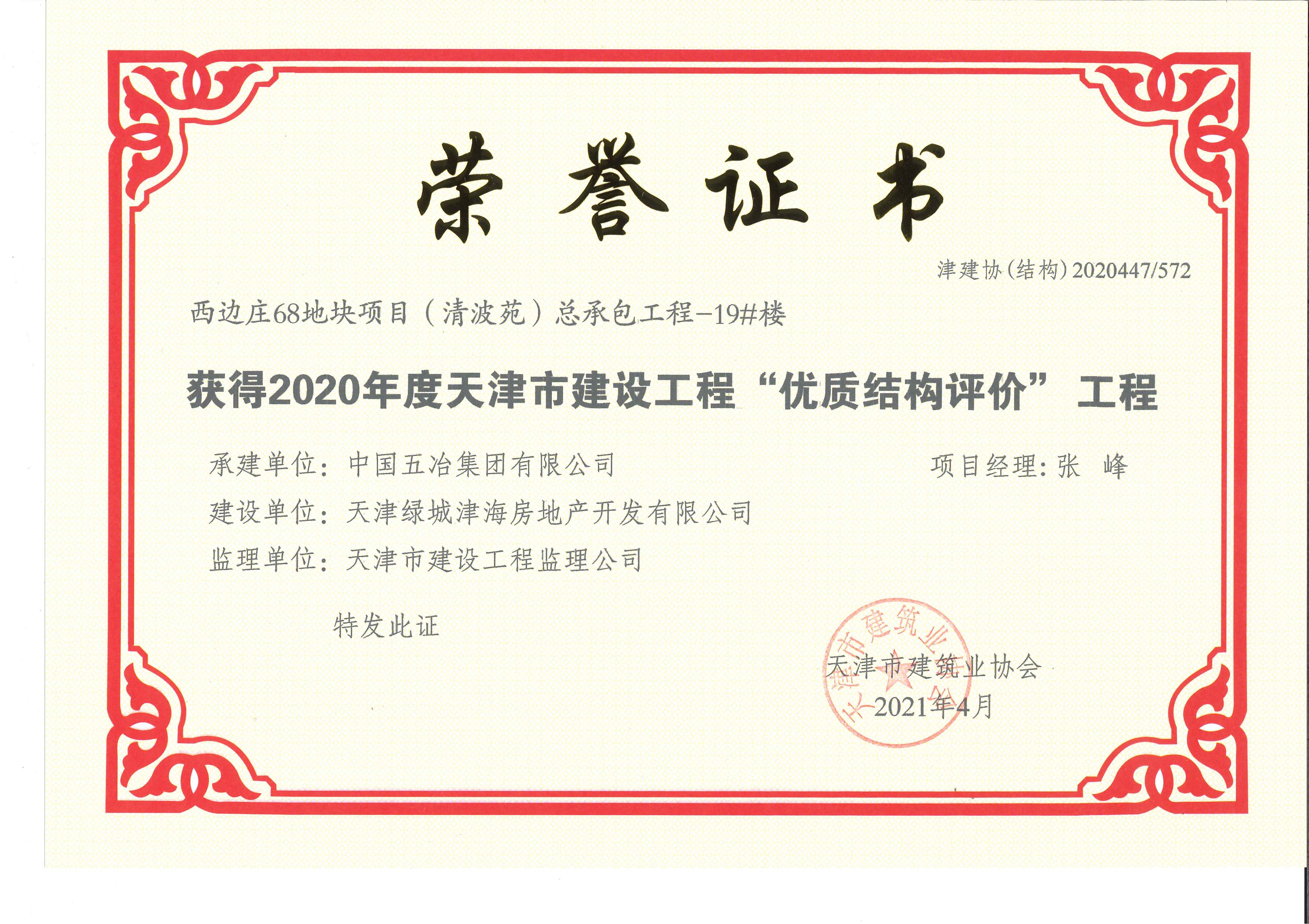 天津靜海綠城(西邊莊68地塊項目-清波苑總承包工程-19號樓)--2020年天津優(yōu)質(zhì)結構評價