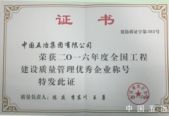 全國工程建設(shè)質(zhì)量管理優(yōu)秀企業(yè)