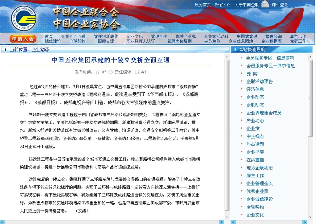 上一篇:國(guó)資委報(bào)道:中冶五冶承建成都十陵立交橋改造工程全線通車(chē)