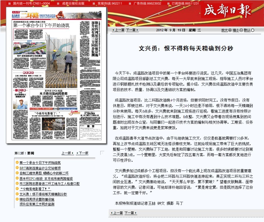 上一篇:天府早報(bào)報(bào)道:成溫路射線首個(gè)承臺(tái)今日澆筑