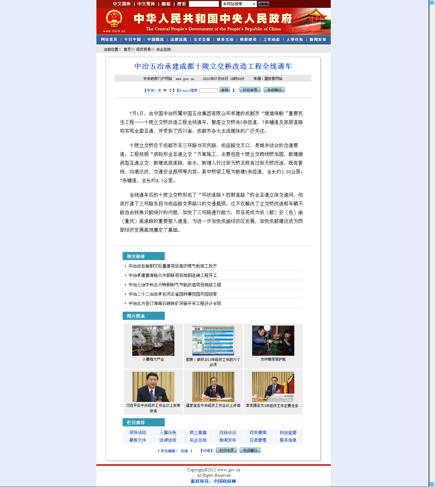 中央人民政府網(wǎng)報(bào)道:中冶五冶承建成都十陵立交橋改造工程全線通車