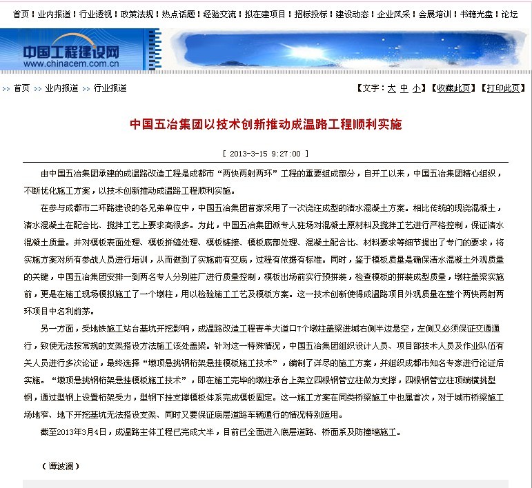 上一篇:中國(guó)冶金建設(shè)協(xié)會(huì)網(wǎng)報(bào)道:中國(guó)五冶集團(tuán)在成溫路項(xiàng)目首創(chuàng)的“鋼桁架無(wú)支架懸掛...