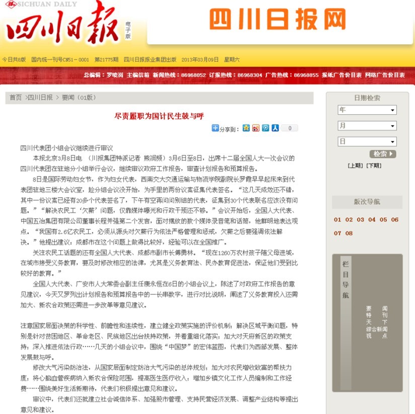 四川日?qǐng)?bào)報(bào)道:盡責(zé)履職為國(guó)計(jì)民生鼓與呼