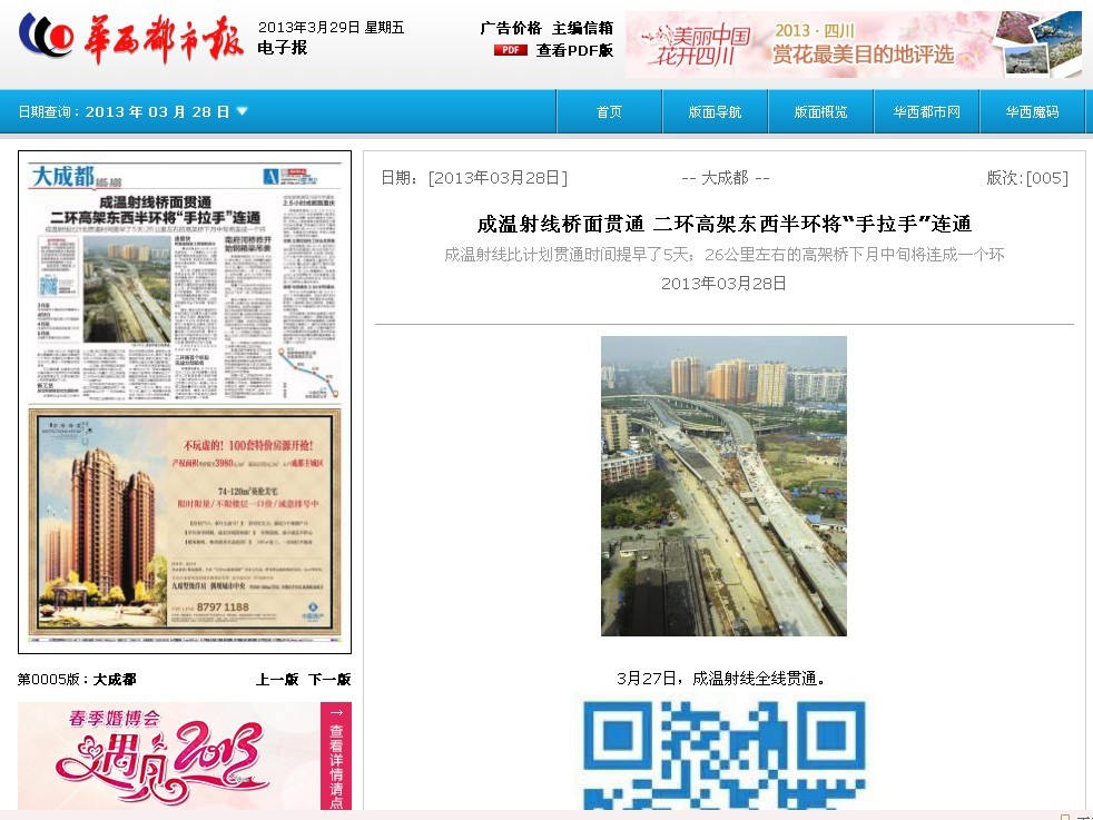 他介紹,成溫射線橋面箱梁吊裝合龍后,接下來將進行高架橋防撞墻、路燈、橋面鋪裝以及交安設(shè)施的施工。其中,本月底完成除青羊大道路段的全部防撞墻施工,4月1日開始高架橋橋面防腐以及橋面鋪裝。預(yù)計4月底,成溫射線底層道路具備通行條件。