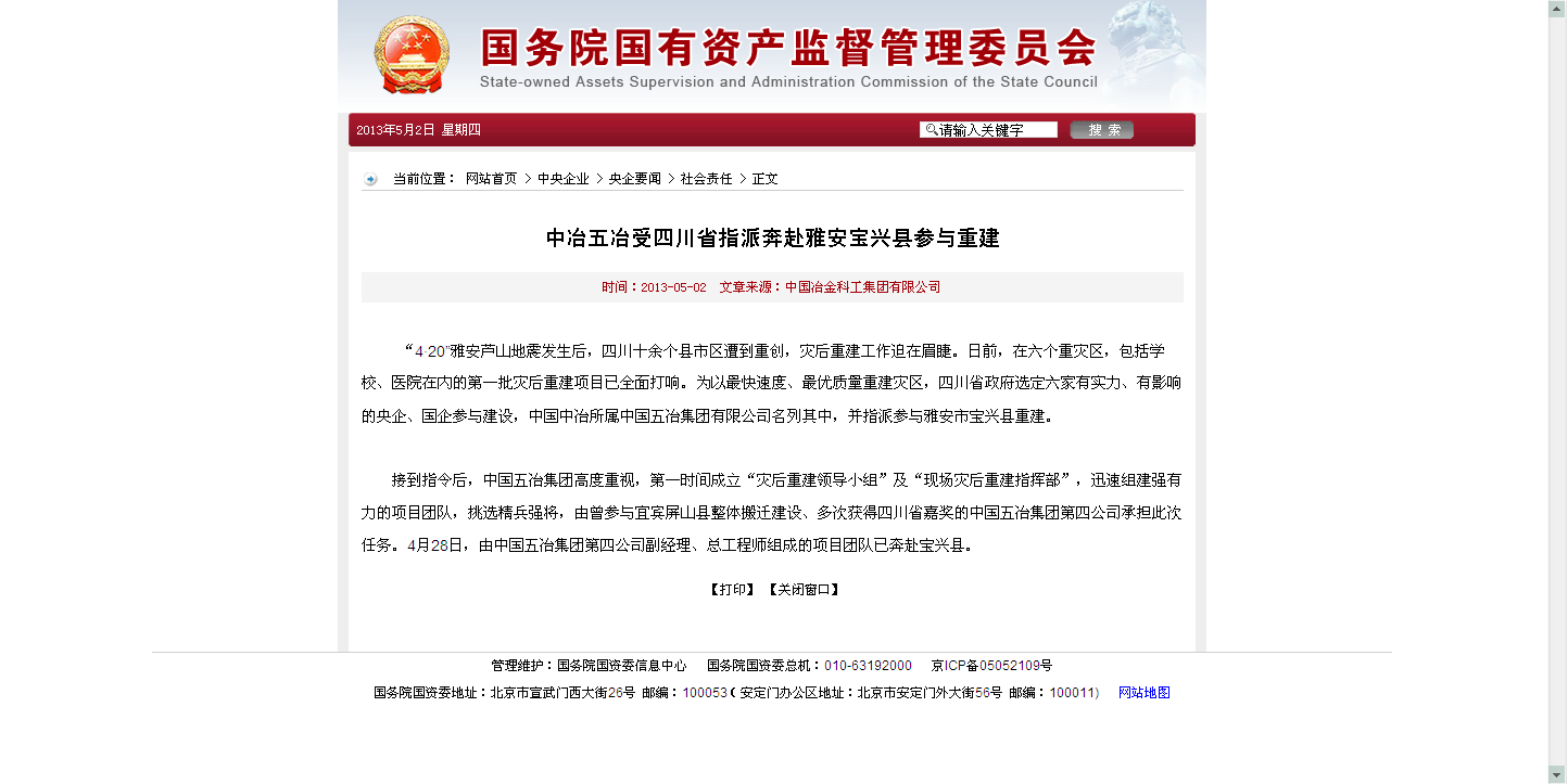 下一篇:中國(guó)工程建設(shè)網(wǎng)報(bào)道:四川省政府點(diǎn)將中國(guó)五冶集團(tuán)奔赴寶興縣參加災(zāi)后重建戰(zhàn)役