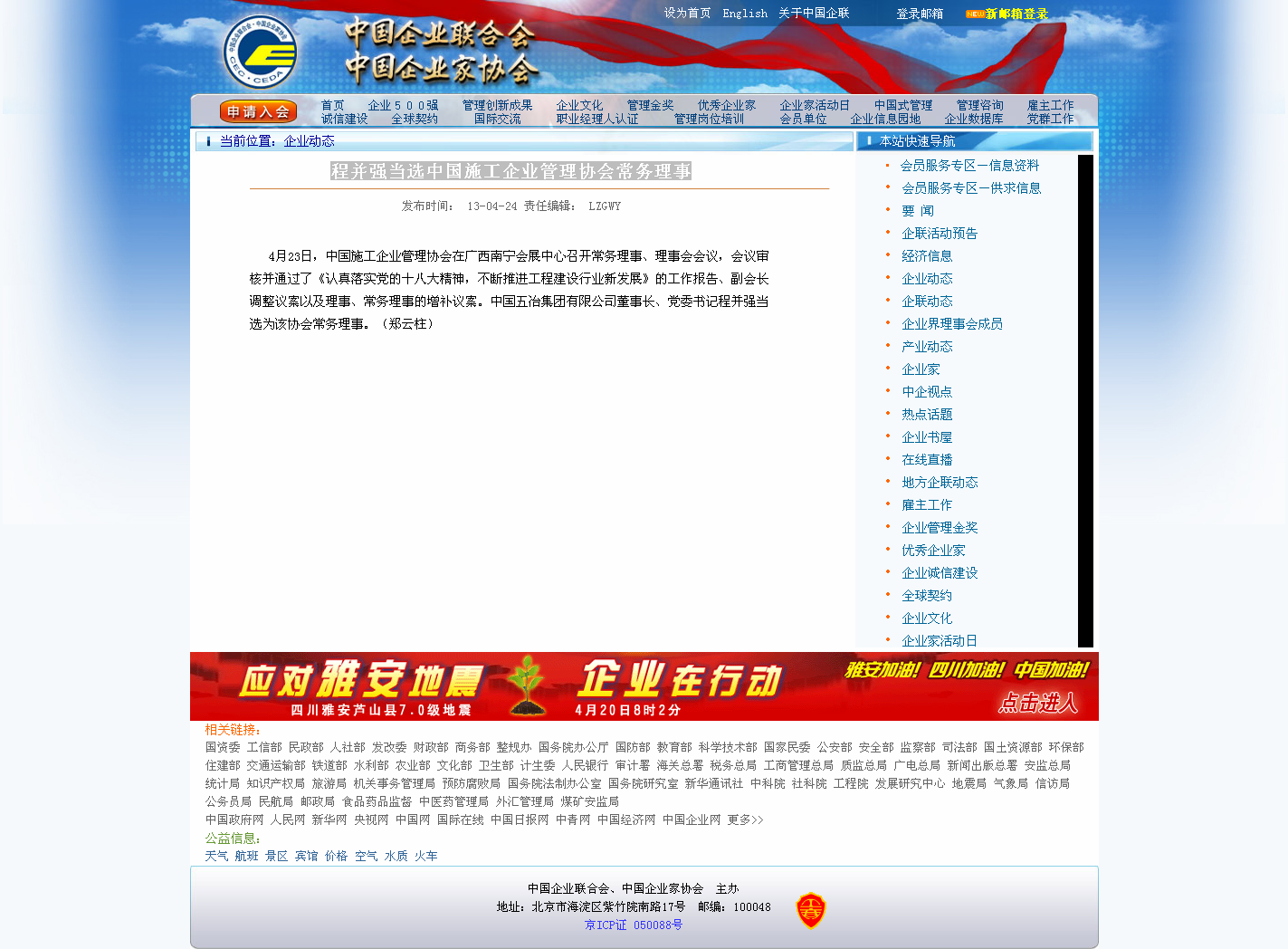上一篇:中國企業(yè)聯(lián)合會網(wǎng)報道:中國五冶集團兩名建筑結(jié)構(gòu)專家支援“蘆山”地震災(zāi)區(qū)