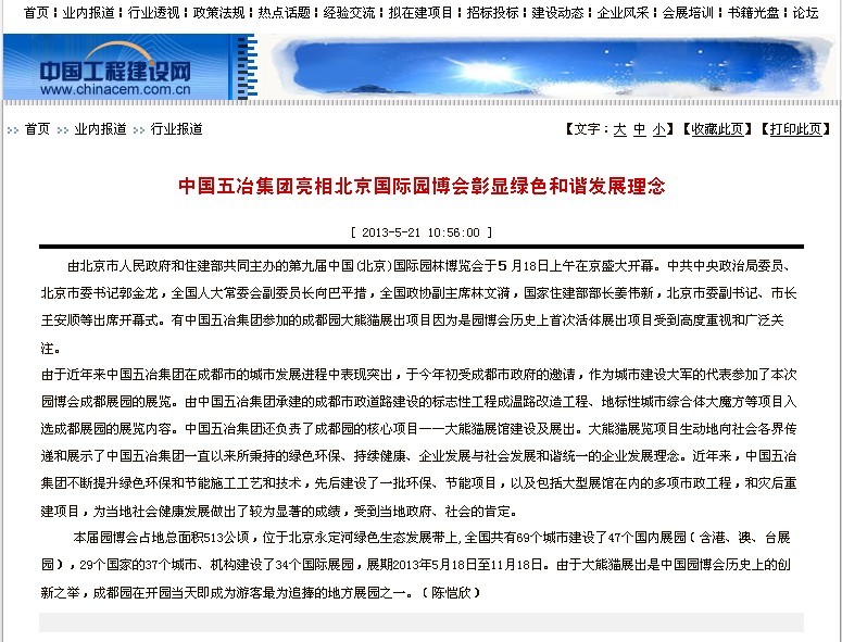 中國工程建設(shè)網(wǎng)報道:中國五冶集團(tuán)亮相北京國際園博會彰顯綠色和諧發(fā)展理念