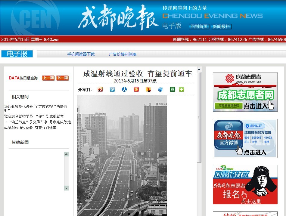 上一篇:成都商報報道:成溫射線有望提前通車