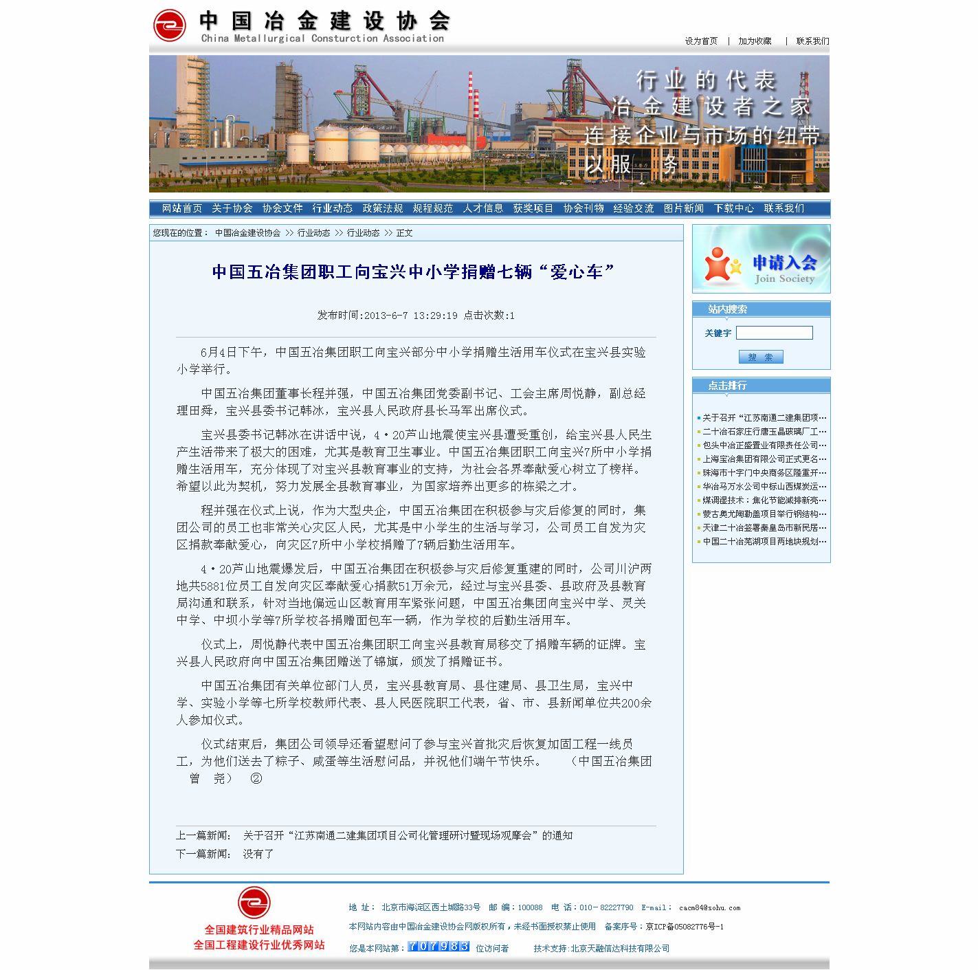 下一篇:國資委報(bào)道:中冶五冶職工向?qū)毰d中小學(xué)捐贈(zèng)七輛愛心車
