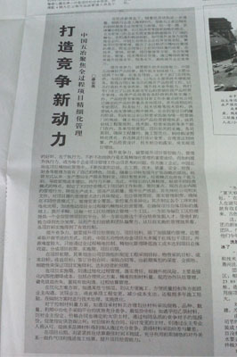 8月18日,《建筑時(shí)報(bào)》7版刊登《打造競爭新動力》一文,聚焦中國五冶全過程項(xiàng)目精細(xì)化管理。