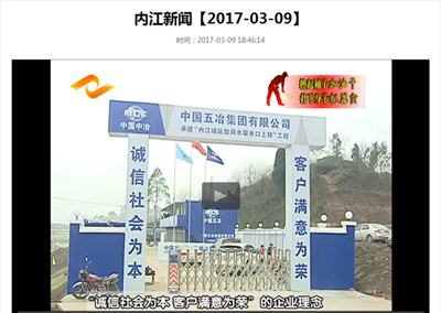 3月9日,內(nèi)江電視臺(tái)《內(nèi)江新聞》播出了中國(guó)五冶集團(tuán)內(nèi)江城區(qū)飲用水取水口移工程建設(shè)情況。