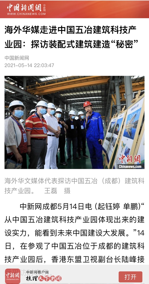 中國新聞網(wǎng):四川版塊頭條位置刊發(fā)媒體團(tuán)在五冶裝配式“智慧工廠”的探秘之旅