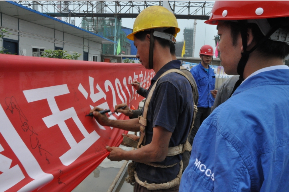 為了認(rèn)真貫徹全國(guó)第十二個(gè)安全生產(chǎn)月和全總第十四屆“安康杯”競(jìng)賽活動(dòng)精神,營(yíng)造安全氛圍,唱響“科學(xué)發(fā)展、安全發(fā)展”主旋律,公司2012年安全生產(chǎn)月活動(dòng)、安康杯暨青安杯活動(dòng)6月6日在威鋼施工現(xiàn)場(chǎng)拉開了序幕。經(jīng)過(guò)前期策劃,制定了2012年安全生產(chǎn)月和“安康杯”、“青安杯”活動(dòng)方案,并陸續(xù)在全公司范圍內(nèi)開展。6月6日下午5點(diǎn)30分,威鋼焦化項(xiàng)目現(xiàn)場(chǎng)熱鬧非凡,200余名農(nóng)民工和爐窯分公司、一分公司以及機(jī)電分公司項(xiàng)目管理人員一起鄭重宣誓:“保證安全生產(chǎn)是我們崇高的職責(zé),為了企業(yè)整體利益,為了個(gè)人生命安全,為了家庭幸福安康,我承諾一定要恪盡職守,遵守紀(jì)律,規(guī)范作業(yè),文明施工,確保安全!”整齊洪亮的宣誓聲在繁忙的工地上空響起,這也標(biāo)志著“中國(guó)五冶集團(tuán)2012年安全生產(chǎn)月活動(dòng)、安康杯暨青安杯活動(dòng)”正式啟動(dòng)。