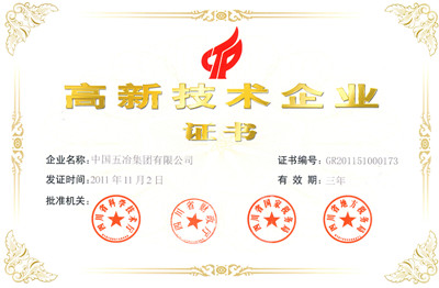 ??2011年11月,中國五冶集團榮獲由國家科技部核準,四川省科學(xué)技術(shù)廳、財政廳、國家稅務(wù)局、地方稅務(wù)局頒發(fā)的“高新技術(shù)企業(yè)”證書。