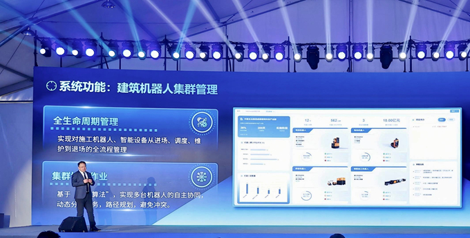 現(xiàn)場(chǎng)觀(guān)摩環(huán)節(jié),與會(huì)嘉賓觀(guān)近距離觀(guān)看了機(jī)器人集群智能調(diào)度管理系統(tǒng)和4款智能建造機(jī)器人在模擬施工環(huán)境中高效配合、聯(lián)動(dòng)作業(yè)的實(shí)景演示,感受智能建造科技在提高施工效率、保障人員安全、提升建筑品質(zhì)、降低建設(shè)成本等方面的優(yōu)異表現(xiàn)。