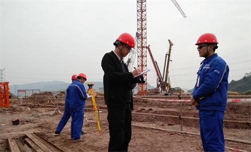 在陽(yáng)光下,四川理工白酒學(xué)院(二期)工程的工地上已是人頭攢動(dòng)的情景。從大年初三開始,工地就開始復(fù)工,幾十名五冶員工分頭行動(dòng),投入到地勘、樁基、土建、土方等標(biāo)段的施工中。