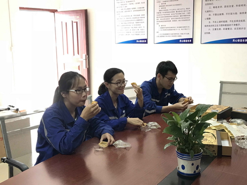 四公司在現(xiàn)場吃月餅慶祝中秋