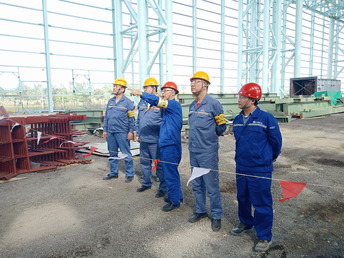 隨著工程進(jìn)度的推進(jìn),各個(gè)專業(yè)施工單位陸續(xù)抵達(dá)施工現(xiàn)場(chǎng),項(xiàng)目已達(dá)到高潮?! 〗?,寶鋼項(xiàng)目組組長路鳳智、薄板事業(yè)部副經(jīng)理李明平等人來到現(xiàn)場(chǎng)對(duì)工人進(jìn)行慰問,送去絲絲溫暖,讓他們感受到就算遠(yuǎn)在異鄉(xiāng),也有如親人般的溫暖。期間,寶鋼領(lǐng)導(dǎo)對(duì)現(xiàn)場(chǎng)的進(jìn)展和安全給予高度好評(píng)。