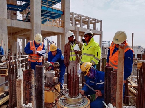 ??????? 在中國傳統(tǒng)佳節(jié)到來之際,遠(yuǎn)在海外的沙特YAMAMA水泥廠項目工地依然呈現(xiàn)著熱火朝天的施工景象。伴隨著起重的哨聲,吊車的轟鳴,焊花的飛舞,近兩千八百余名中外員工堅守崗位,全身心的投入到一號水泥生產(chǎn)線原料準(zhǔn)備系統(tǒng)和原料生產(chǎn)系統(tǒng)的尾項清理中,為確保YAMAMA一號水泥生產(chǎn)線按期投產(chǎn),二號水泥生產(chǎn)線順利推進(jìn)而不懈努力。