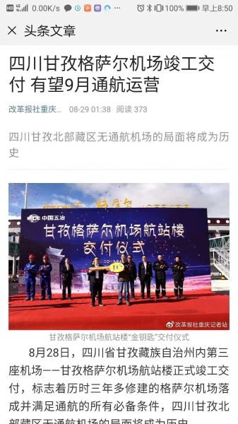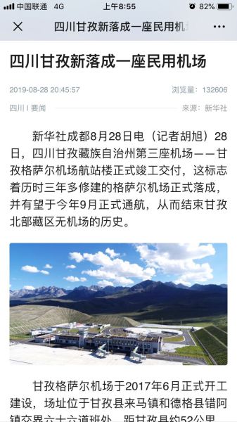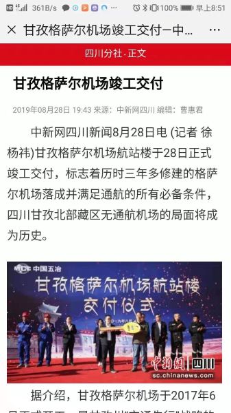 四川觀察:http://kscgc.sctv.com/sctv/lookback/1/2019/08/28/20190828_shared.html?programmeUrl=http://fscgc.sctv.com/NewsTV/2019/08/28/scxw20190828002.mp4&programmeTitle=%E7%94%98%E5%AD%9C%E6%A0%BC%E8%90%A8%E5%B0%94%E6%9C%BA%E5%9C%BA%E8%90%BD%E6%88%90%E4%BA%A4%E4%BB%98%20%E6%9C%89%E6%9C%9B9%E6%9C%88%E9%80%9A%E8%88%AA&programmeImage=http://kscgc.sctv.com/sctv/1/image/public/201908/20190828184902_tjee6skhpc.jpg