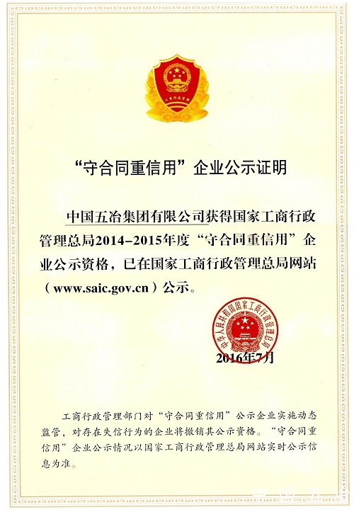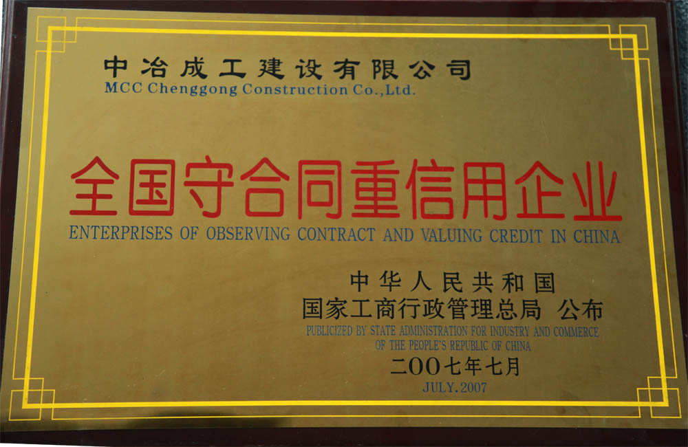 全國重合同守信用獎